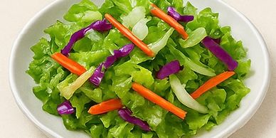 Acrisp garden mix topped with zesty ginger dressing-light but full of flavor.